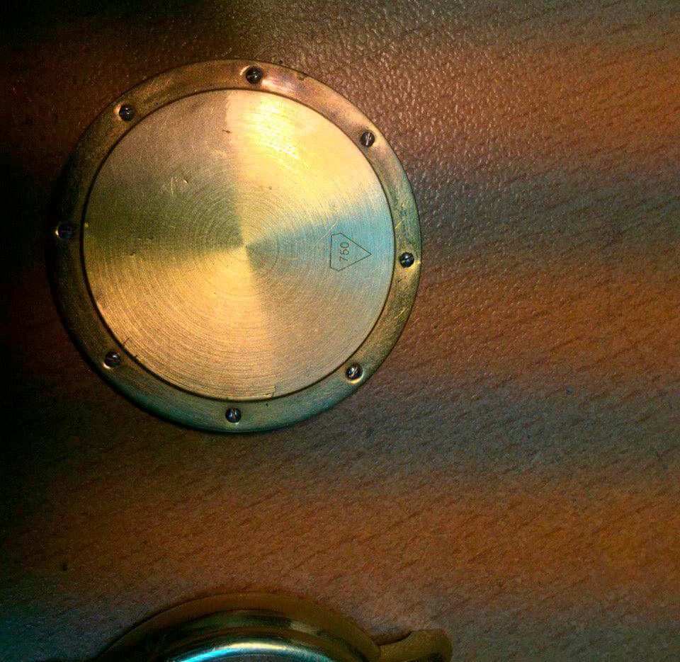 Корпус фальшивых часов с пробой 750. Хорошо заметен толстый слой золота, покрывающий корпус фальшивки.