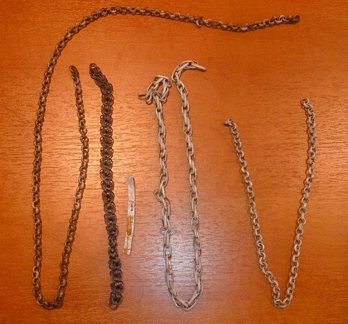 Фотографии поддельных золотых цепочек которые прошли химическую обработку (аффинаж).